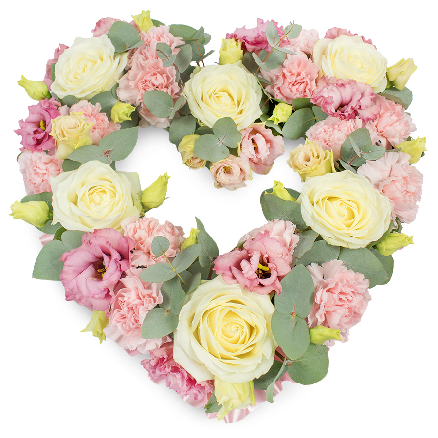 Express your heartfelt emotions with our Elegantly Arranged Open Heart Bouquet. This stunning arrangement features a harmonious blend of white roses, pink carnations, and pink lisianthus, complemented by lush eucalyptus leaves. Each flower is hand-selected to ensure the highest quality and freshness.